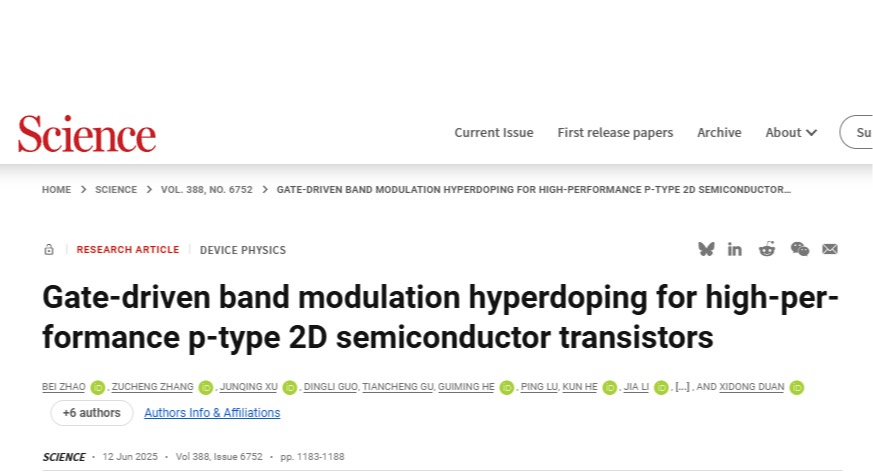 Science发文!化工院段曦东教授团队突破传统电介质击穿对静电掺杂的限制